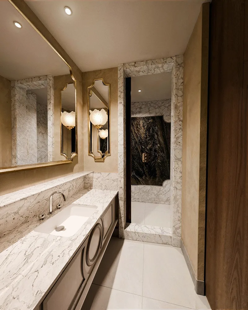Here, the decor becomes a scene: the volumes are large, the bathroom is almost ceremonial, and every detail celebrates the exception.