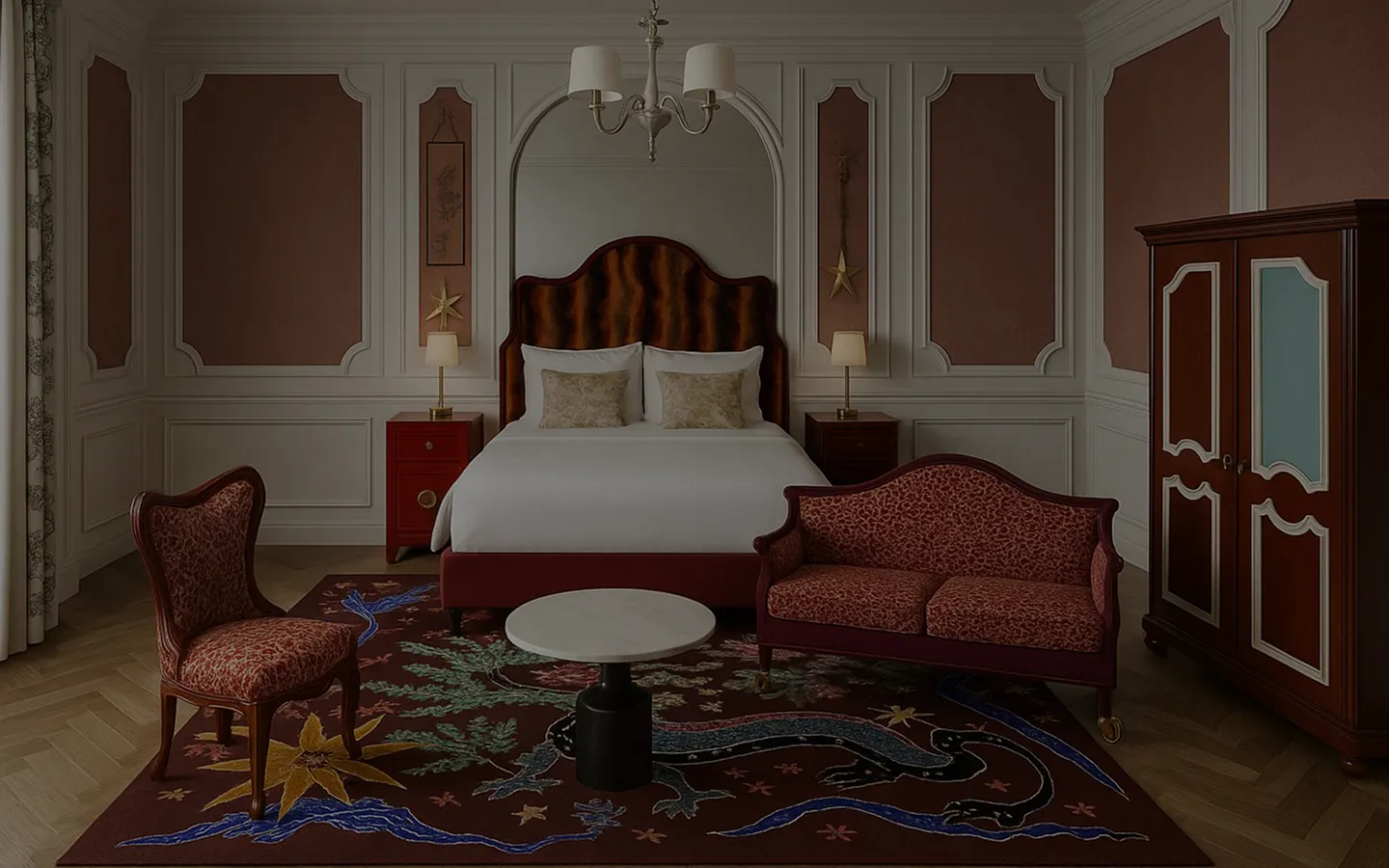Beautifully appointed classic rooms with one king bed and marble bathroom with a charming shell-shaped sink and walk in shower. Art deco design with a contemporary touch. Luxurious linen, bespoke bathroom amenities, minibar with complimentary soft drinks, coffee & tea selection.